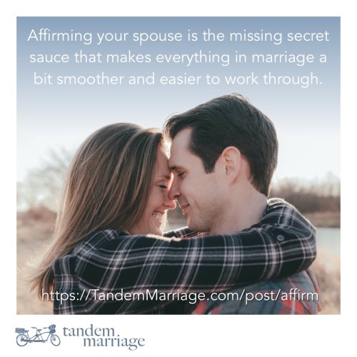 “Affirming your spouse is the missing secret sauce that makes everything in marriage a bit smoother and easier to work through.”