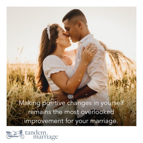 Do you want your marriage to improve? Look for positive changes that you can make. Are you having trouble finding anything that you can change? Ask your spouse since they might be able to lovingly articulate a needed change or two. Or, you could just stay stuck — but please don't. The world needs you to be the best version of yourself – and that happens to be what you and your spouse need as well.
